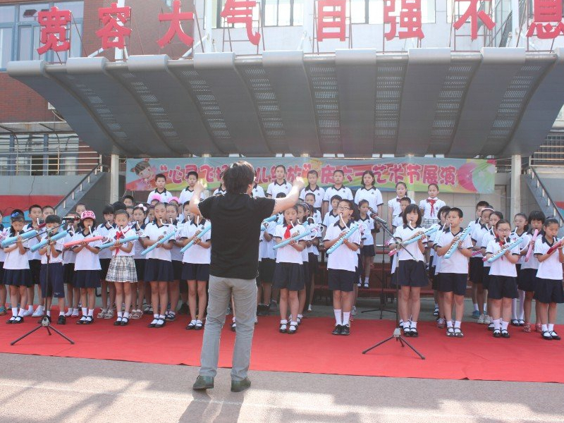 口风琴采取整班制普及教学和优秀生社团教学两种途径。优美的音质,简单的操作,受到学生的喜欢。在2015年济南市班级艺术节中,我校6.3班演奏的口风琴《卡侬》获得了济南市一等奖。
